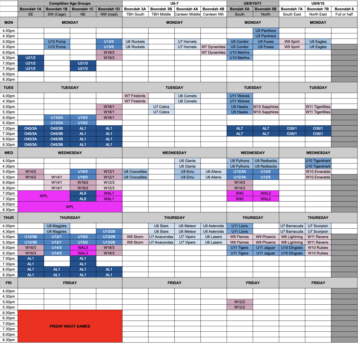 Please stick to your allocated field and respect teams training around you and after you.